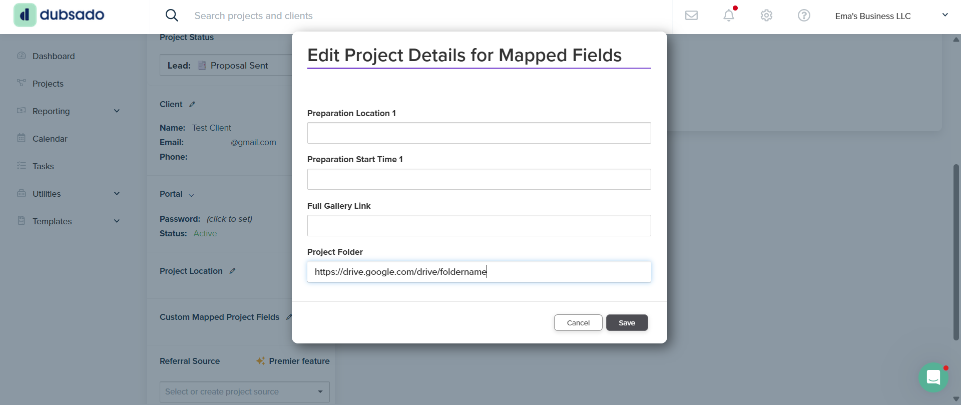 One of the best uses of project mapped fields is sharing Google Drive folders with clients. Instead of pasting a folder link into every email manually, you can store it once and reuse it everywhere.