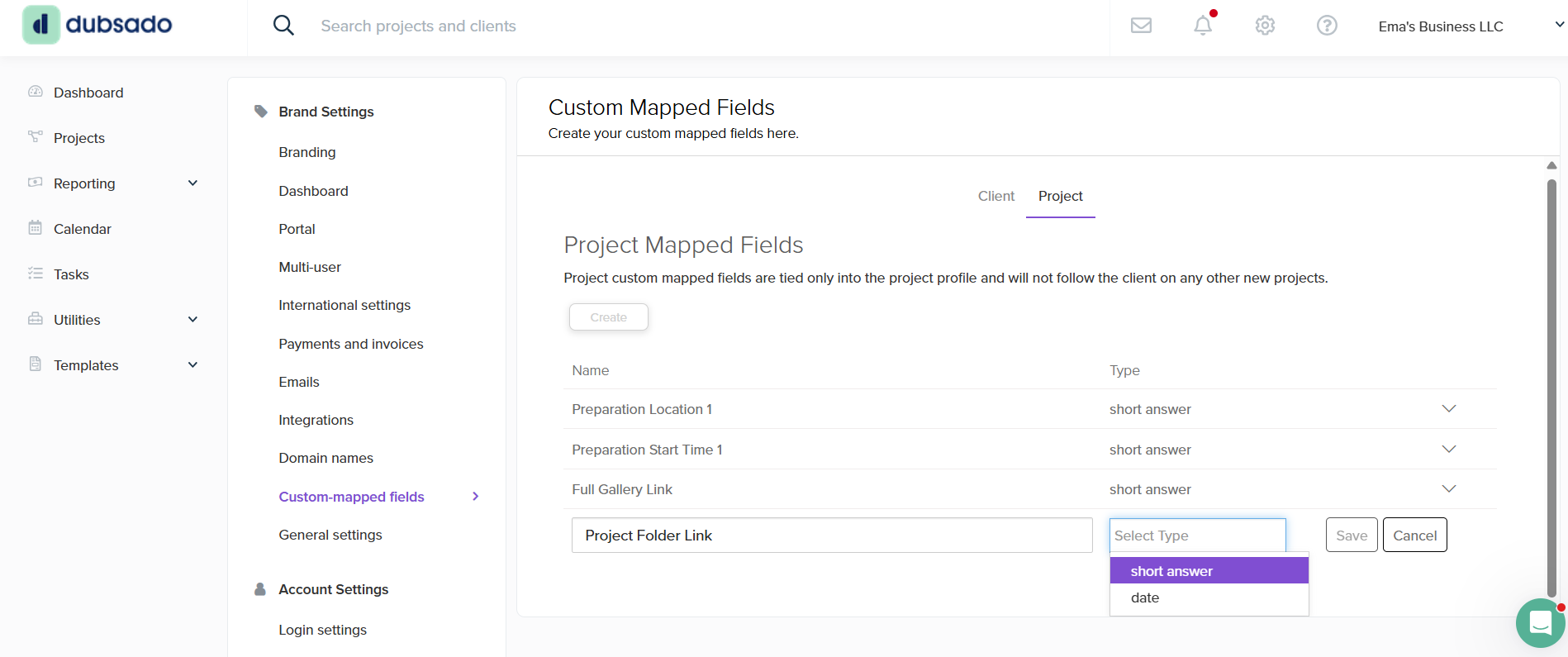 In Dubsado, there are only two types of custom mapped fields you can create.