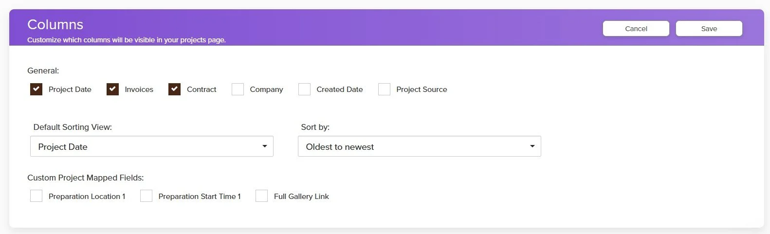 Inside your Projects area, you can customize both the columns you see and how your projects are sorted. This gives you control over organizing your projects in the way that works best for you.